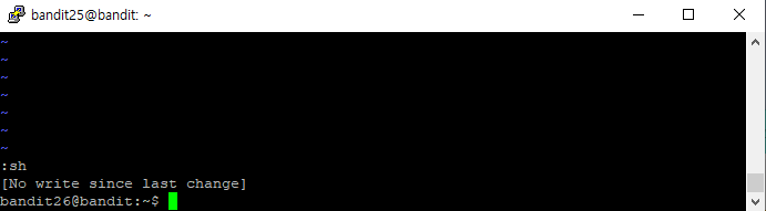 위에 것을 입력하면 바로 bandit26으로 접속 가능하다!
