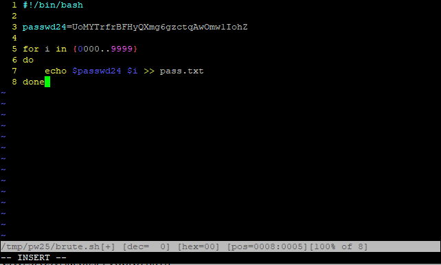 3.vim brute.sh 를 이용해 , 아래와 같이 만들어 passwd24 + 0000부터 9999까지의 숫자를 pass.txt에 저장하자.