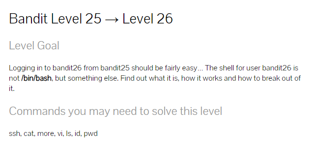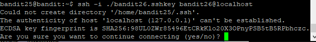 bandit25에서 bandit26으로 로그인하는 것은 상당히 쉬울 것입니다.